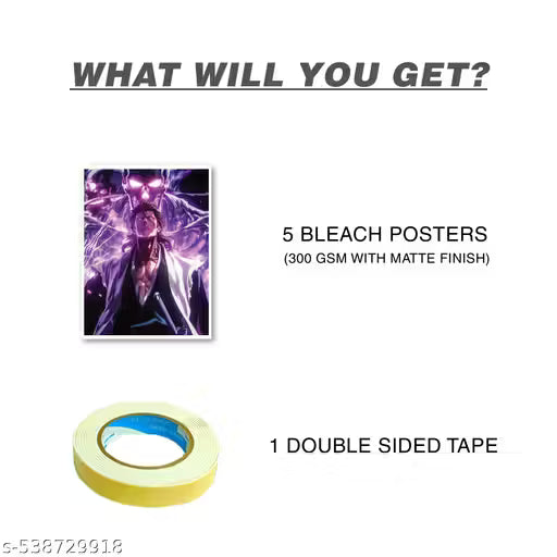 Name : 5 Bleach Anime Wall Posters Set - Bold Aggressive Manga Art, 22x32 cm, 300 GSM Cardstock, HD Vibrant Collage Kit, No Adhesive, Perfect Anime Wall Decor for Bedroom, Dorm, Gaming Room, Manga Fans